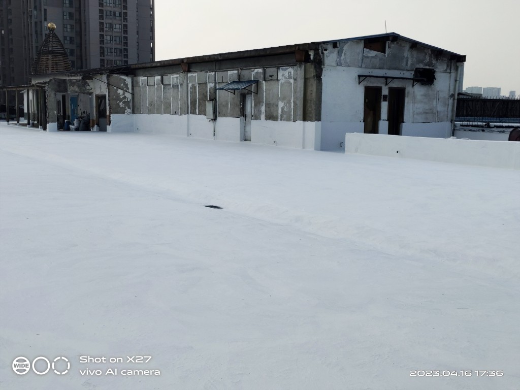 該園區廠房屋面因長期振動導致多次防水維修失敗。采用SYR系統后,其高彈性特性有效吸收了結構振動能量,避免了材料疲勞開裂。經過2年使用跟蹤,屋面完好無損,未見任何老化跡象。