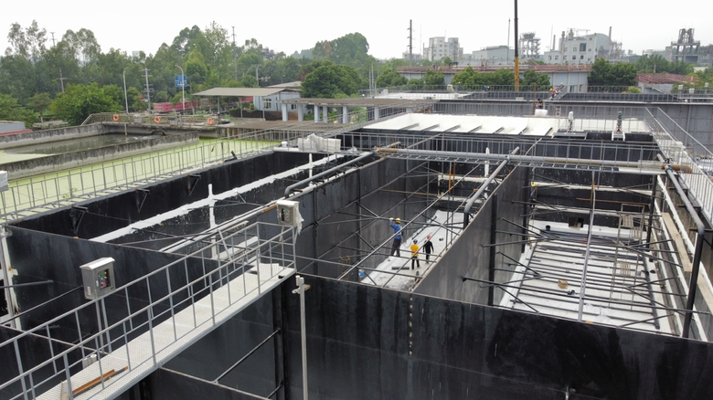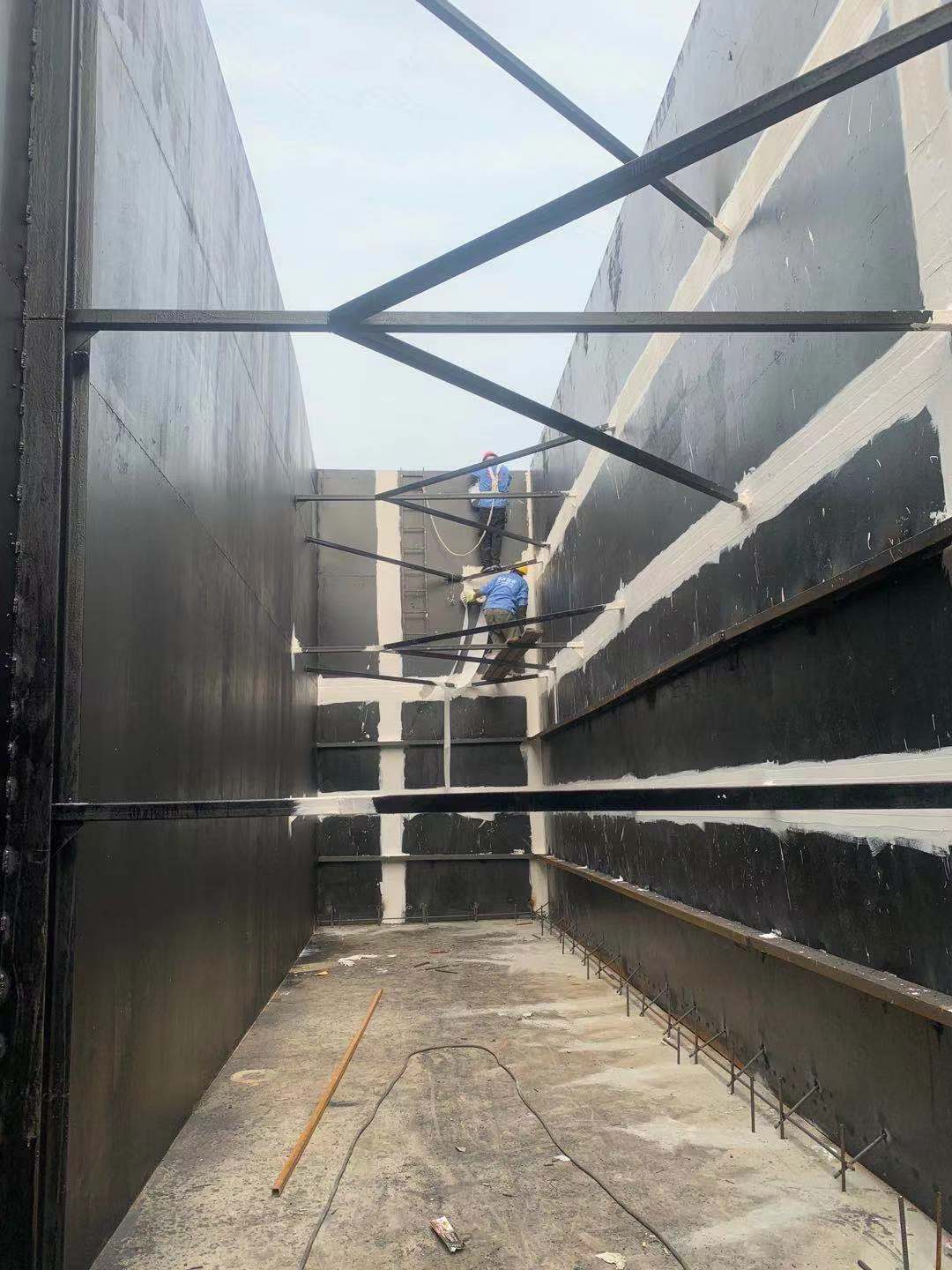 我公司承接的新津工業污水處理廠提標改造項目水箱防水工程,現場的情況是升級改造修建了兩個鋼結構的水箱,由于是鋼結構的,焊接處縫隙較多,容易出現漏水的問題,處理漏水的方式比較麻煩,普通的材料在鋼結構鋼板上粘貼不牢固,并且是污水處理池,污水具有一定的酸堿腐蝕性,所以在材料的選擇上,要考慮到與鋼板的粘結力,耐酸堿腐蝕性等特點,甲方經過找多家公司根據多種材料現場去做樣品后,實際情況檢測分析,最終確定選擇我公司制定的方案,采用蜀禹SYR金屬防水系統針對水箱防水處理,處理后效果很好。