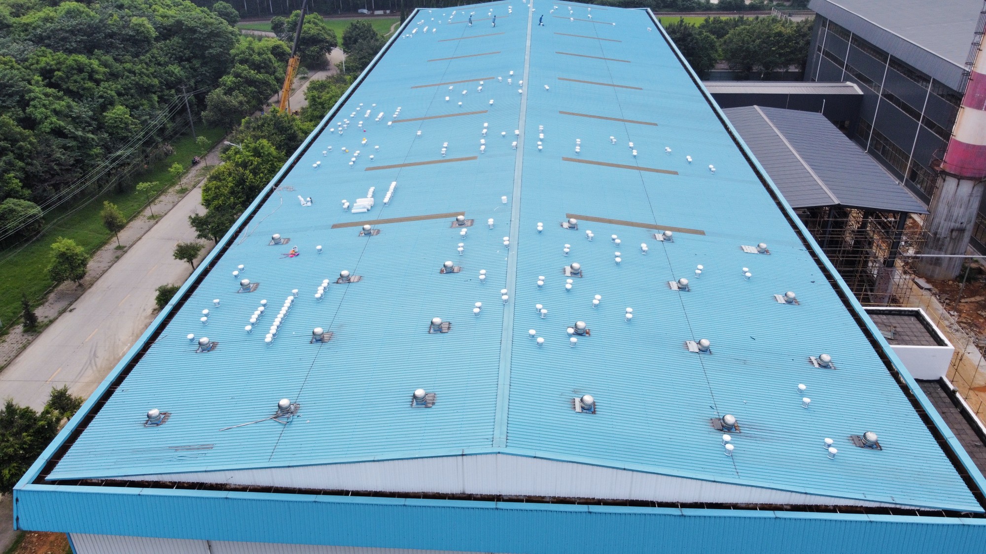 啟明星鋁業鋸切車間彩鋼頂防水施工