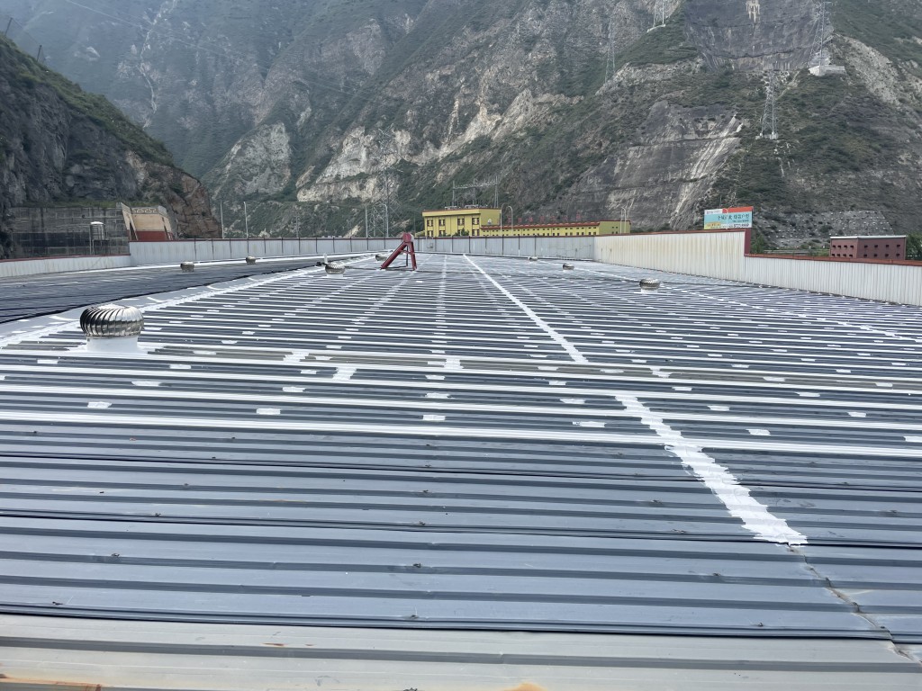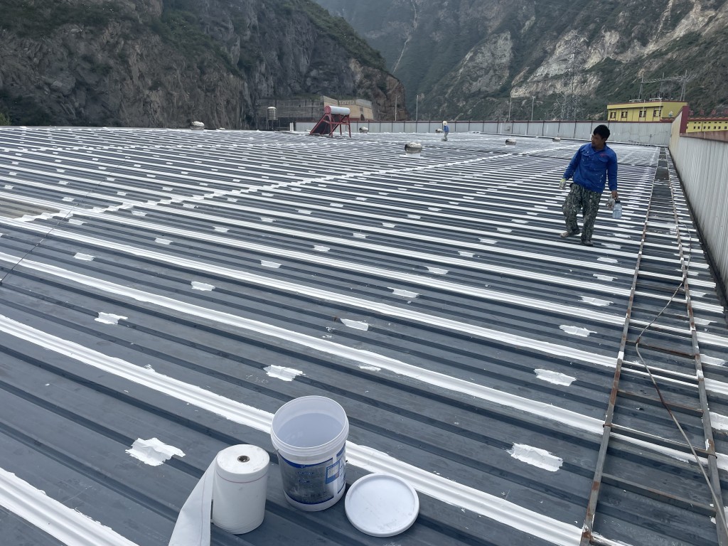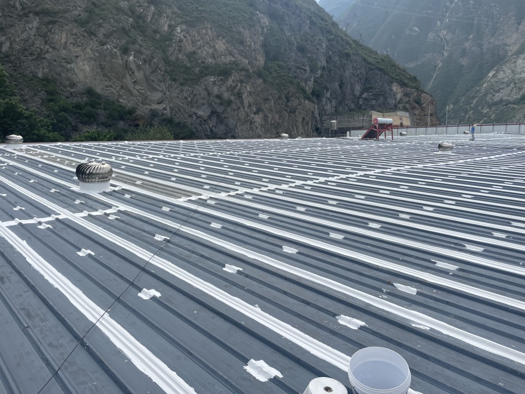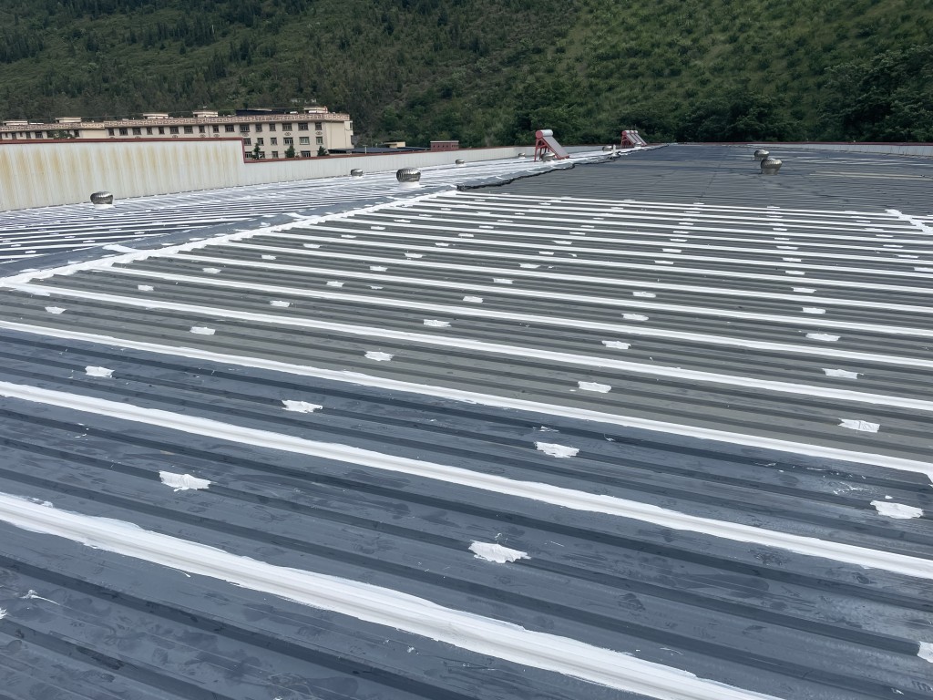 我公司承接的位于四川省阿壩藏族羌族自治州汶川縣威州鎮沙窩子阿壩州普蘭特二手車交易市場有限公司廠房彩鋼頂防水補漏工程,這個工程是鋼結構廠房,以前屋頂有多處漏雨的情況,由于漏水點位較多,業主方之前找公司在廠房屋頂又全部滿加蓋了一層彩鋼瓦,但是經過了一段時間下雨的時候還是多處漏雨的情況,實在沒辦法了,找到了我們,我們根據現場實際查勘的情況,我們推薦采用SYR金屬屋面防水系統解決這個彩鋼頂漏雨難題,彩鋼搭接縫及螺絲釘部位先涂刷SYR金屬屋面專用防水涂料然后鋪貼專用縫織聚酯布,再涂刷SYR金屬屋面專用防水涂料,待干后表面再涂刷SYR金屬屋面專用防水涂料。業主方經過考慮和考察之后決定采用我們的方案施工,事實證明我們施工之后下雨檢測效果很好,采用SYR金屬屋面防水系統施工的彩鋼頂下雨不漏雨了。