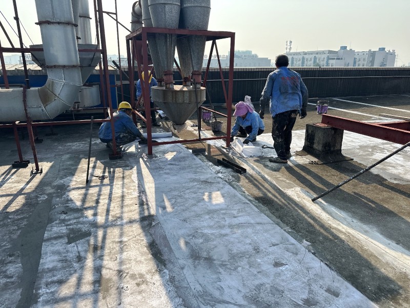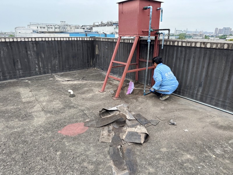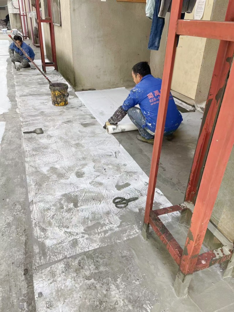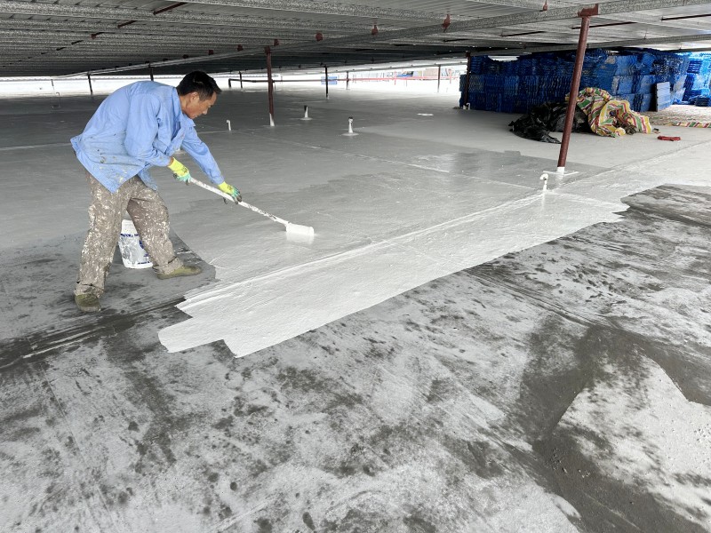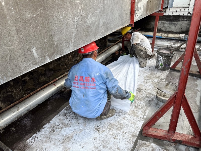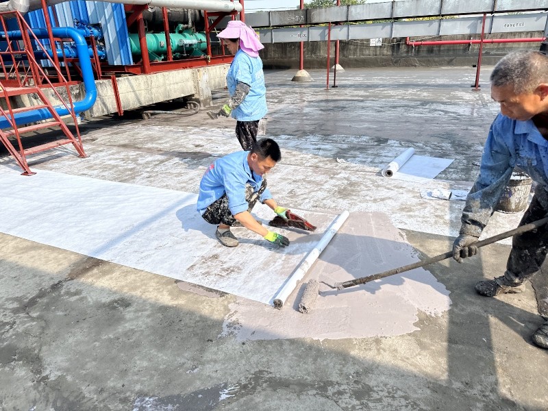 施工過程中,蜀禹防水公司的專業團隊首先清理了屋頂基層表面的雜物,確保施工面干凈、平整。然后,在基層表面涂刷了一層混凝土液體硬化劑,以增強基層的強度和硬度,為后續防水層的施工打下堅實的基礎。