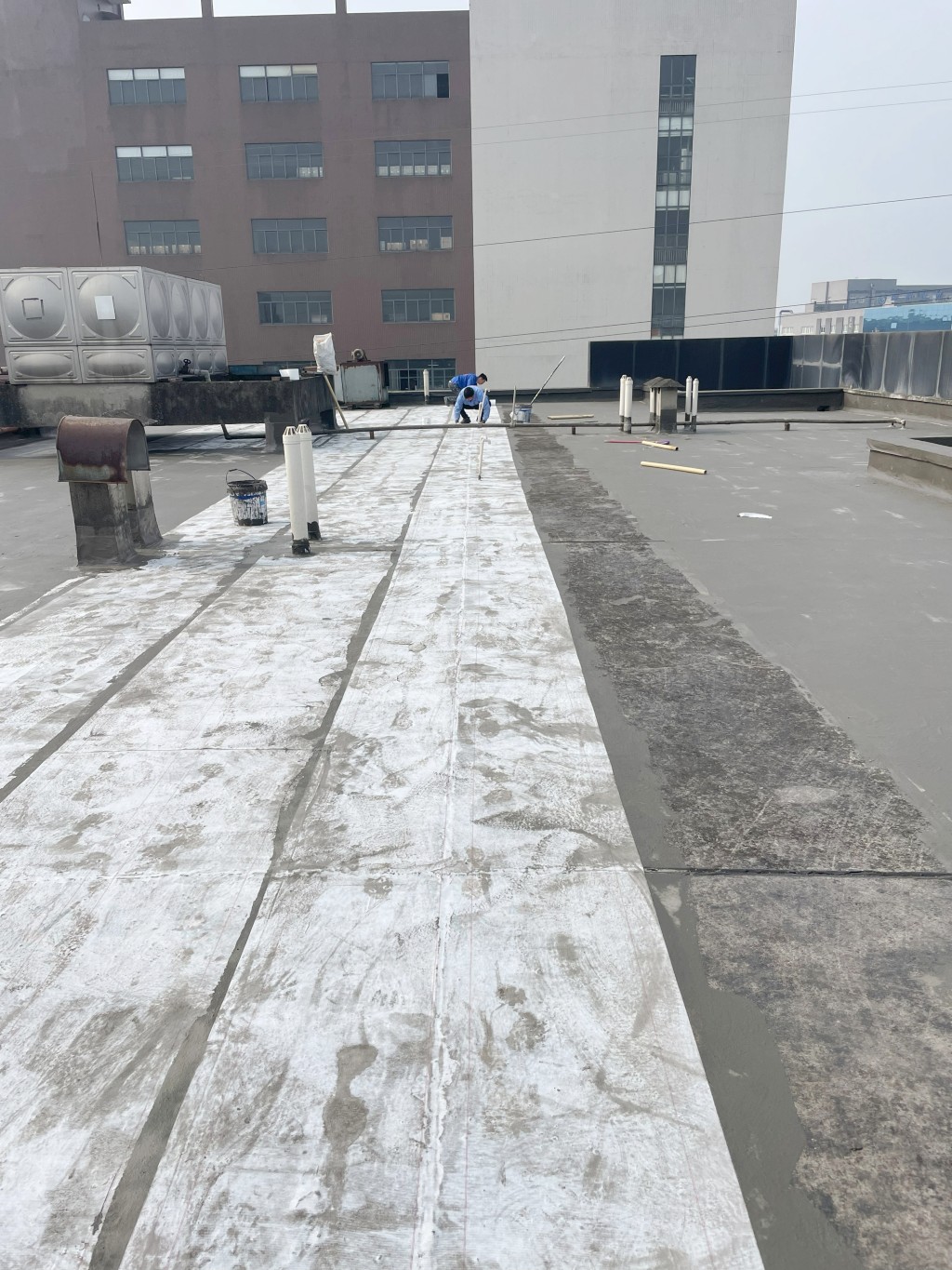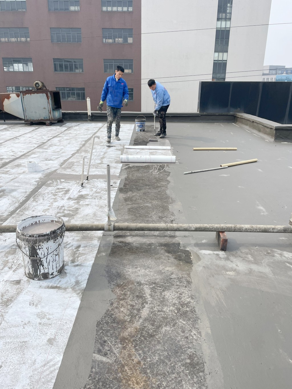 3. 滿做聚合物防水涂料:在修補好的屋頂表面滿做Ⅰ型聚合物防水涂料,該涂料具有良好的粘結性和防水性能,能夠有效滲透到基層孔隙中,形成一道初步的防水屏障。