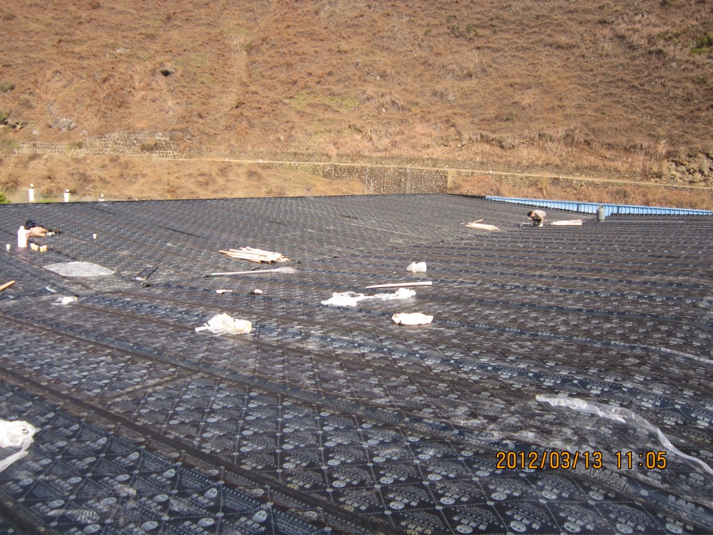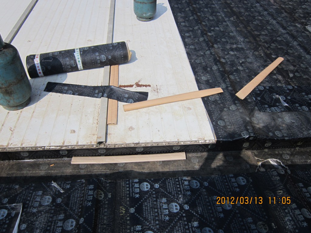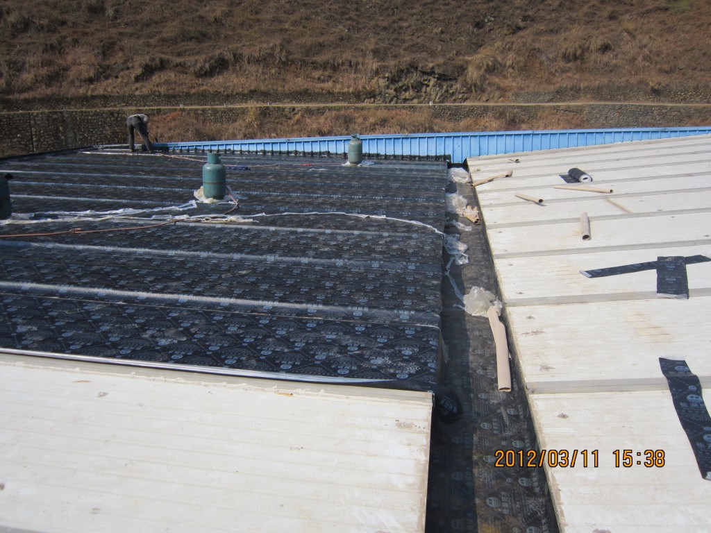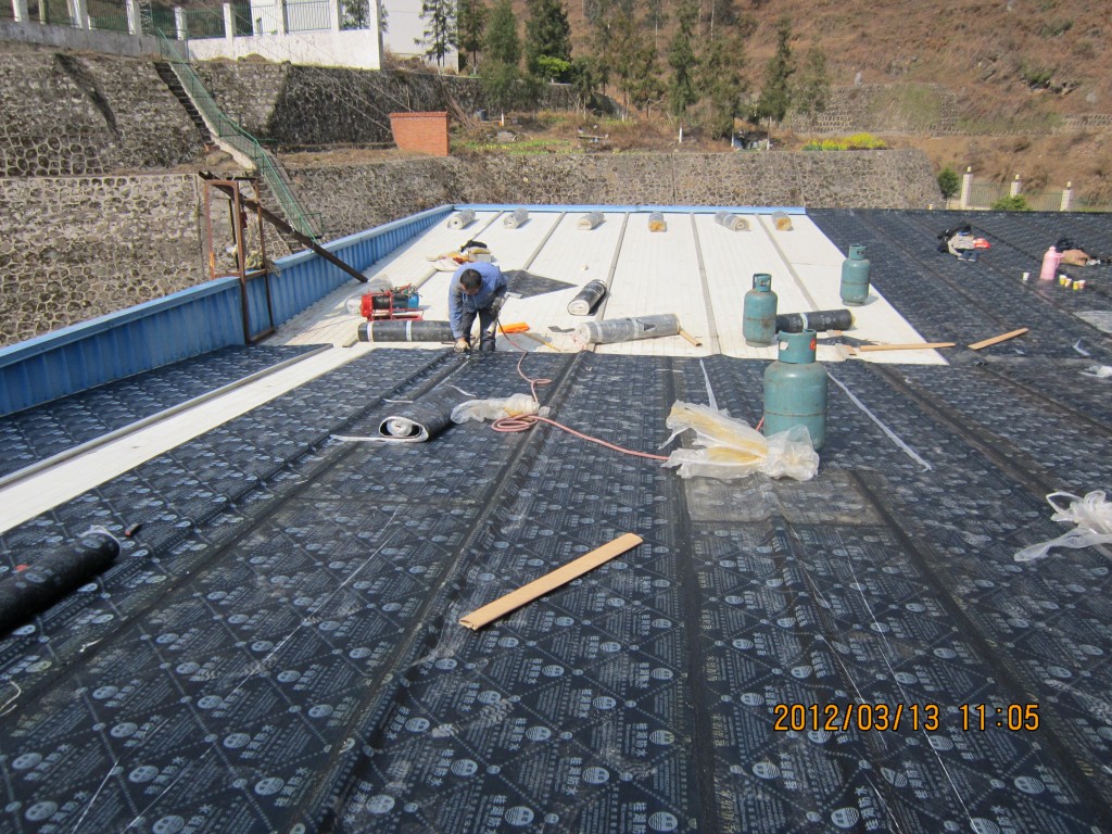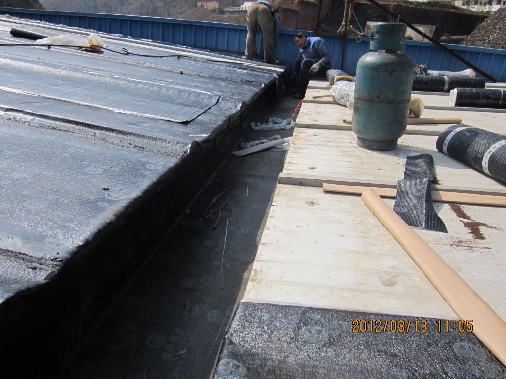 甘洛縣吉日波水電站位于四川省涼山彝族自治州甘洛縣境內,吉日波水電站的車間頂部采用彩鋼頂修建,車間經過一些年代后陸續出現多處漏水,期間經過多次小修小補效果均不理想,甘洛縣吉日波水電站于2012年2月找到本公司業務員,本公司派人前往查看現場后,最終采取的方案是在彩鋼瓦頂不全做一層4mm玻纖胎SBS改性瀝青防水卷材,本公公司于2012年3月10日開始施工,施工后效果非常好,截至今年前段時間的回訪,吉日波水電站車間彩鋼頂的防水效果依然非常好。