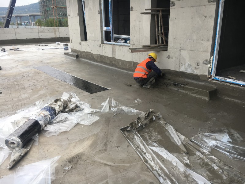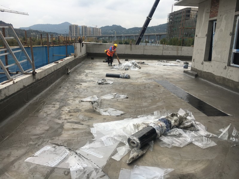 成都蜀禹建筑防水工程有限責(zé)任公司承接廣元市蒼溪碧桂園展示區(qū)屋面防水工程施工業(yè)務(wù),2018年11月進場開始施工,本公司專業(yè)防水施工人員在屋面防水工程施工中按照規(guī)范施工操作,爭做標化工程,本工程屋面防水采用的方法為,先將基層表面清理干凈,在基層表面涂刷一層JS聚合物水泥防水涂料,然后再鋪貼反應(yīng)粘高分子防水卷材,雙層防水達到萬無一濕的效果。